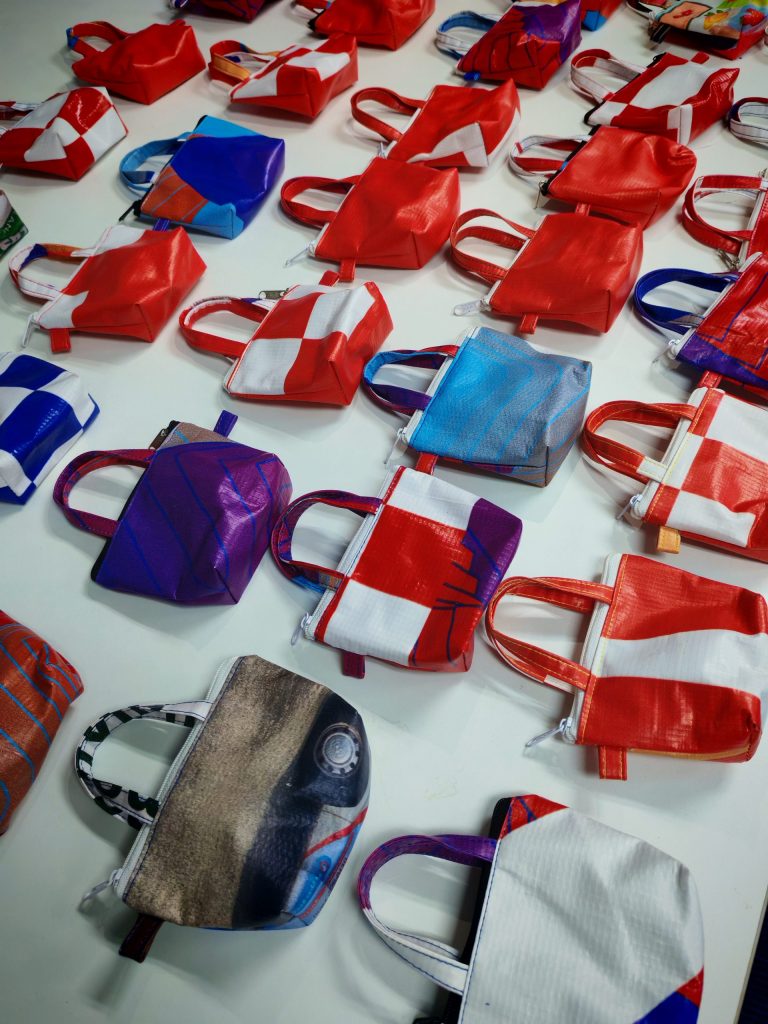 Together, we transformed these used banners into functional mini tote bags everyday items that extend the material’s lifespan and reduce the need for new resources.
