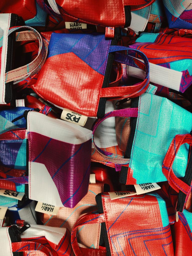 That was the approach behind our recent collaboration with Pos Malaysia Berhad, where Hara Makers repurposed post-event banners into 1,000 mini tote bags through our community-based Buy-Back Programme.